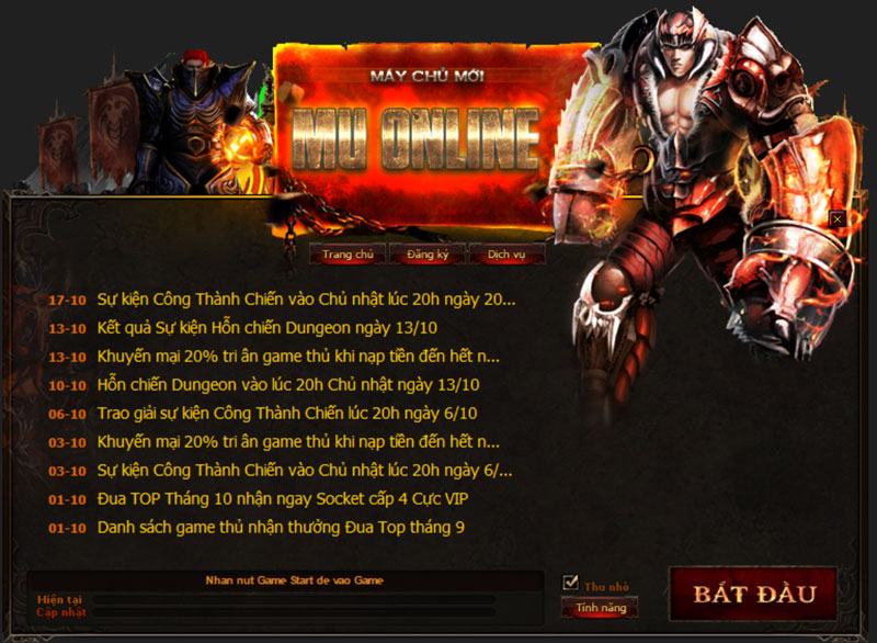 - Bước 5: Chọn "BẮT ĐẦU" để hành trình với MU Giang Hồ ngay thôi nào.