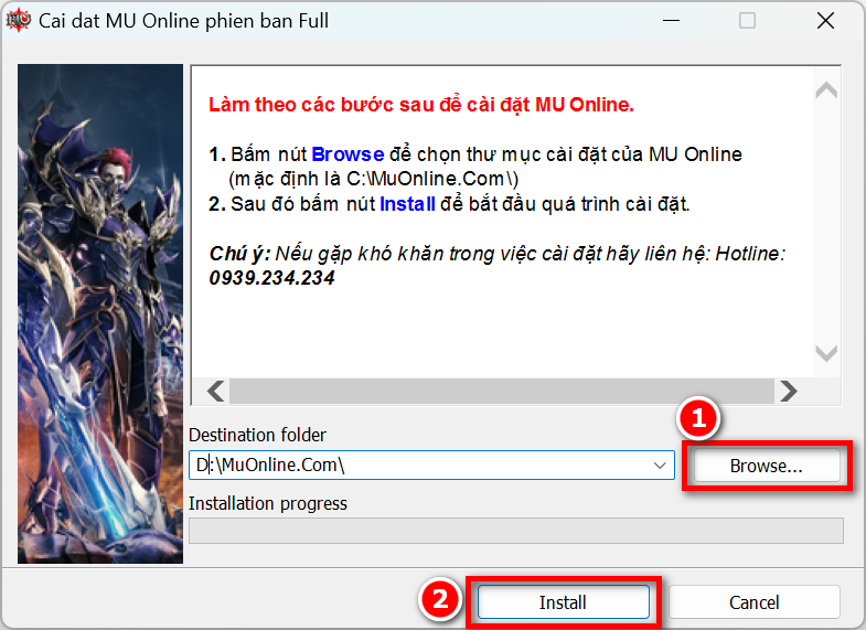 ✮ Để thay đổi thư mục cài đặt game, bạn có thể nhấp chuột vào nút "Browse" Hệ thống sẽ cho phép bạn chủ động chọn vị trí thư mục cài đặt MU Giang Hồ như ý thích.